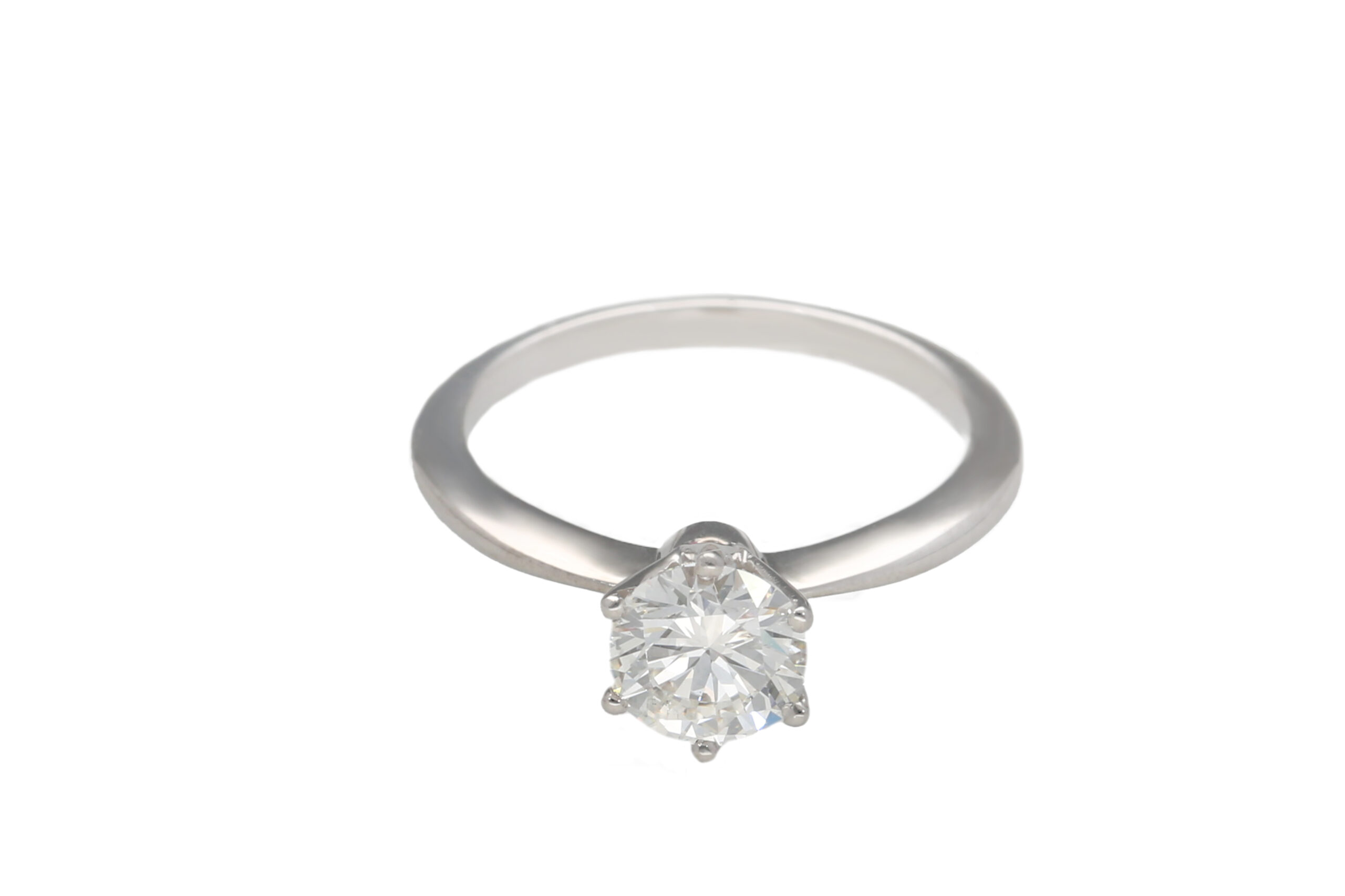 Description:DeGEORGIA engagement ring in 18 kt white gold with a 1.01 ct center diamond, GIA certified (the Gemological Institute of America), K color, SI2 clarity and excellent cut.
